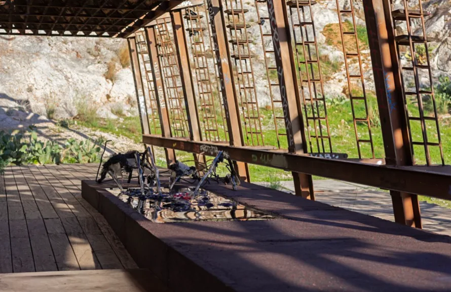 Οι εναλλαγές της χλωρίδας, του φυσικού τοπίου και της ανθρώπινης παρέμβασης, τα φυτά που αναπτύσσονται σε διάφορα σημεία και η αυστηρή γεωμετρία σε συνδυασμό με τα φαινομενικά άκαμπτα υλικά του έργου διαμορφώνουν το δικό τους ετερόκλητο περιβάλλον.