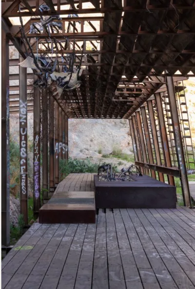 Στο ίδιο σημείο, οι αρχιτέκτονες Μπούκη Μπαμπάλου-Νουκάκη και Αντώνης Νουκάκης δημιούργησαν μια ανοιχτή κατασκευή –υποδομή για υπαίθρια έκθεση γλυπτικής, στο πλαίσιο του προγράμματος ενοποίησης των αρχαιολογικών χώρων το 2003, η οποία δεν χρησιμοποιήθηκε ποτέ για τον αρχικό της σκοπό αλλά παραμένει αγκιστρωμένη στον βράχο.