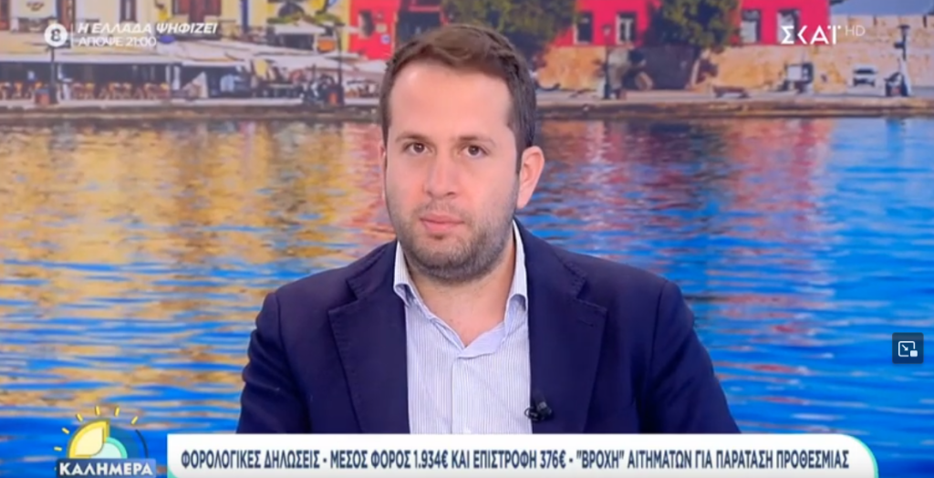 Στην Εκπομπή Καλημέρα του ΣΚΑΙ μίλησε ο υπεύθυνος τύπου του Υπ.Οικονομικών Ομ. Τσάπαλος για τις φορολογικές δηλώσεις και το ενδεχόμενο παράτασης. Ο κος Τσάπαλος ανέφερε:  "Φαίνεται ότι για πρώτη φορά μετά…