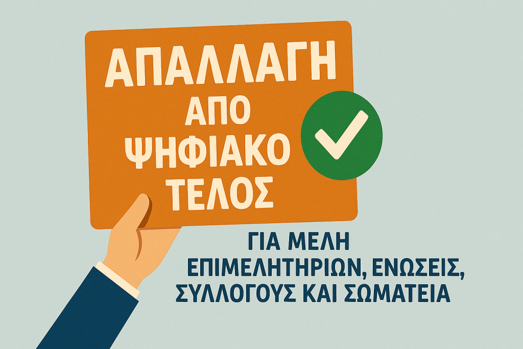 Κατάργηση ψηφιακού τέλους συναλλαγής για συνδρομές σε επιμελητήρια, ενώσεις, συλλόγους και σωματεία από τα μέλη τους